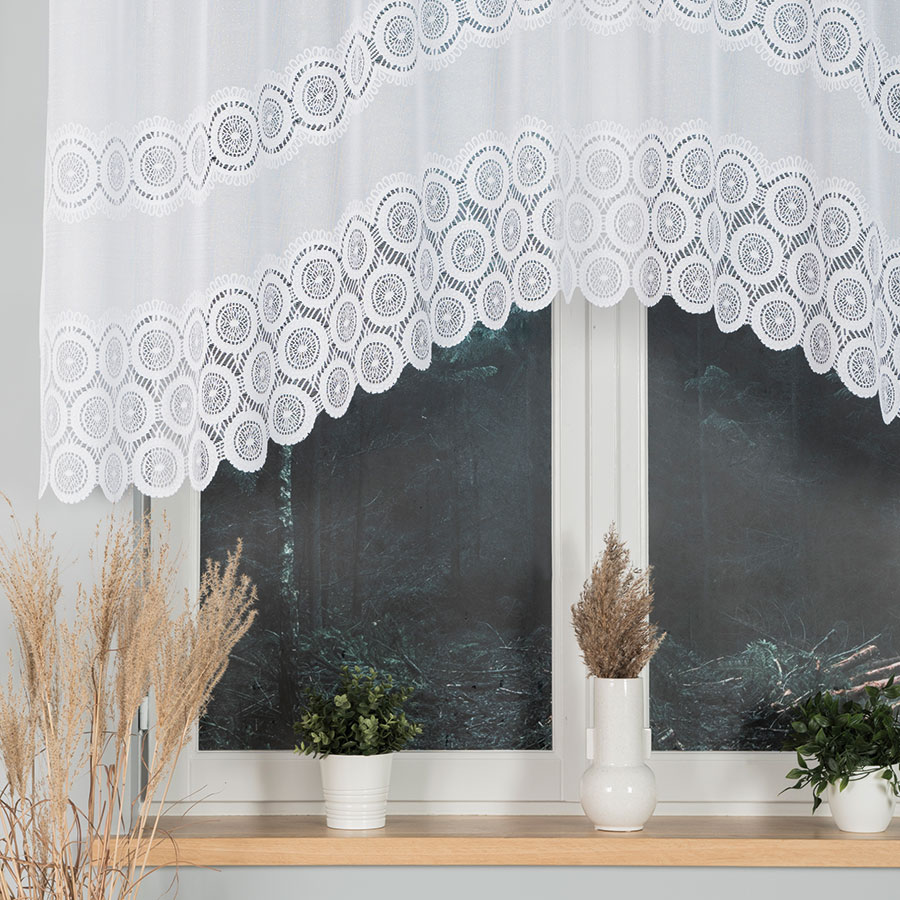 Zavjesa od žakard tkanine, spremna za vješanje. Zavjesa se može vješati na žabice ili tunelom navući na karnišu. Jednostavna za održavanje, nije ju potrebno glačati nakon pranja.