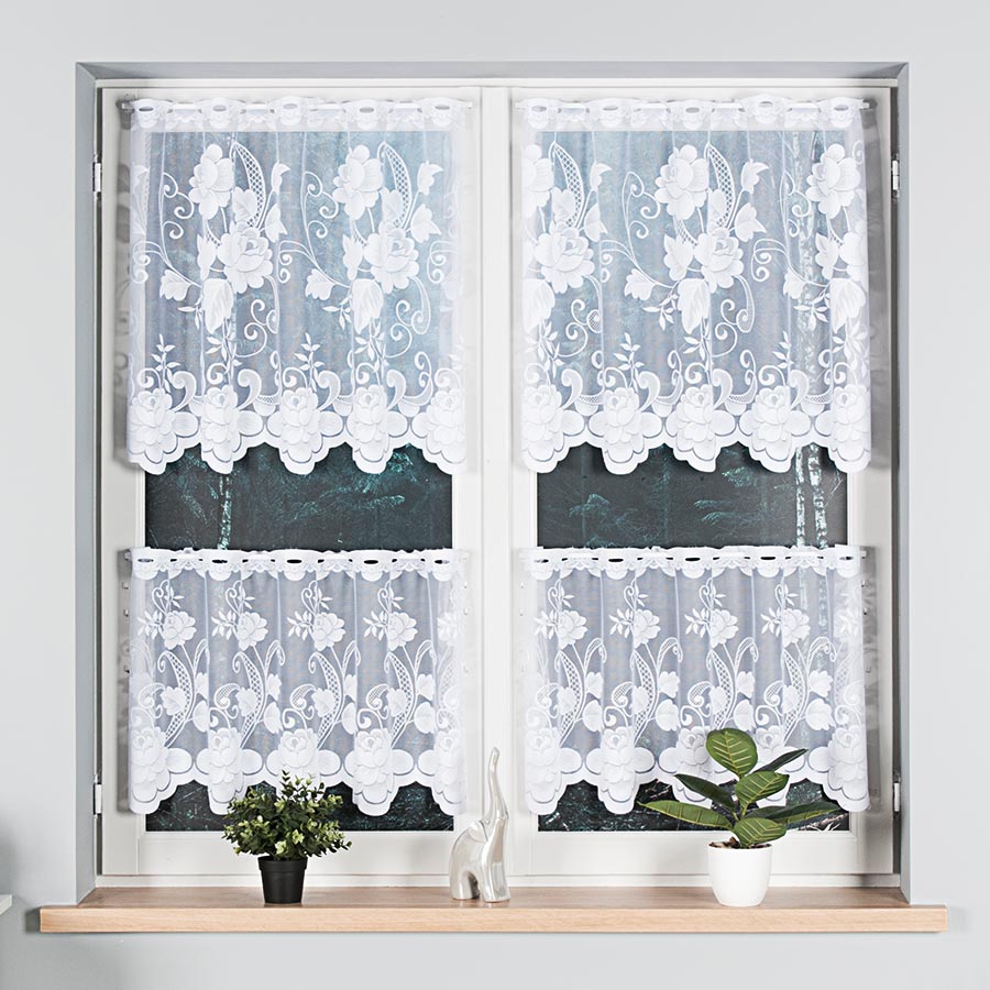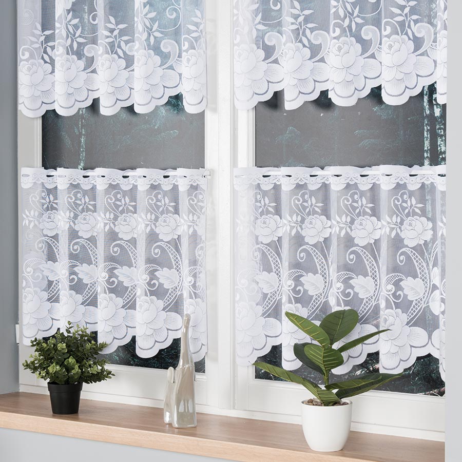 Nudimo kuhinjske zavjesice gotove za kačenje. Zavjesice su obrađene po rubovima, možemo ih besplatno suziti – molimo da željenu širini unesete u polje „komentar“. Nije moguće mijenjati visinu. Zavjesice se mogu prati u perilici na temperaturi do 30°