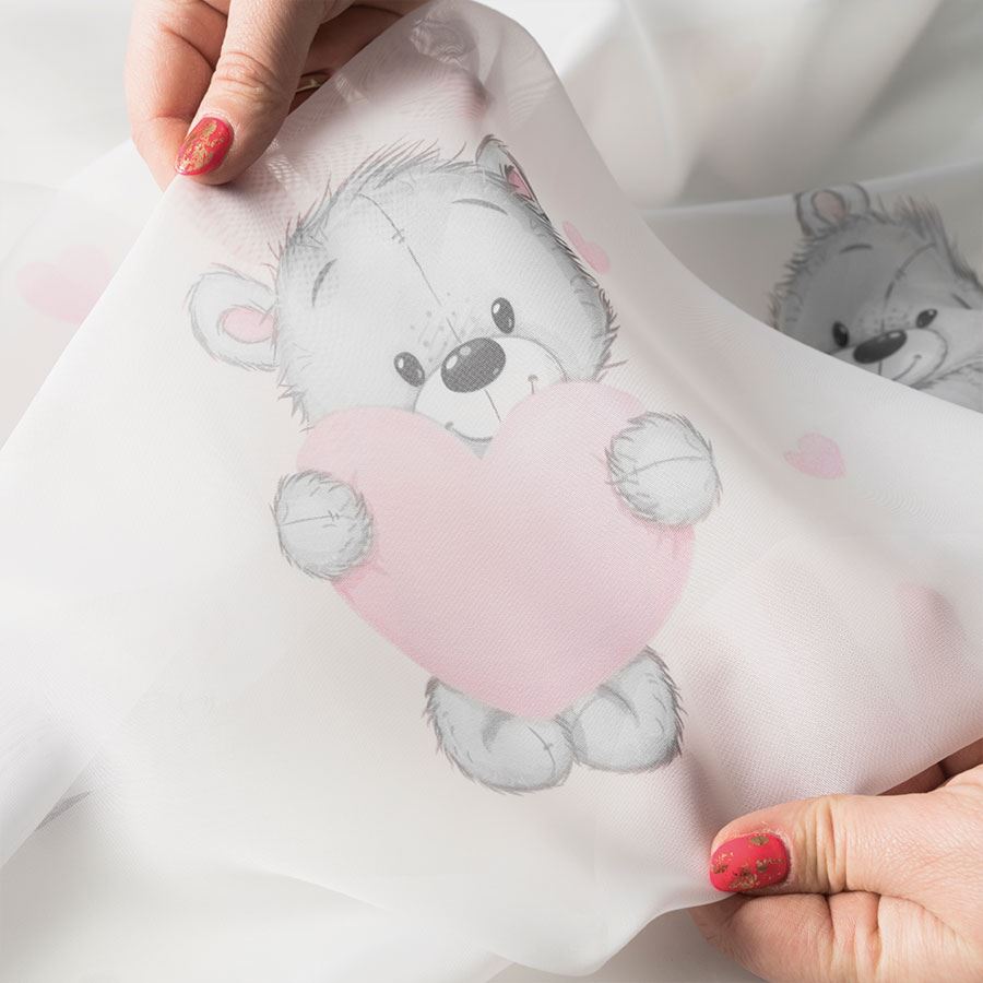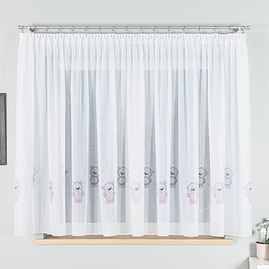 Zavjesa za dječu sobu iz voala na nabranoj traci 1:2. Mjere zvjese prije nabranja. Voal tkanina sa štampanim uzorcima.