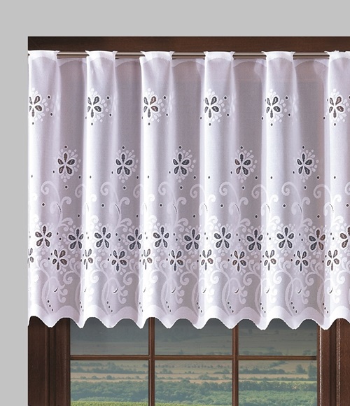Nudimo kuhinjske zavjesice gotove za kačenje. Zavjesice su obrađene po rubovima, možemo ih besplatno suziti – molimo da željenu širini unesete u polje „komentar“. Nije moguće mijenjati visinu. Zavjesice se mogu prati u perilici na temperaturi do 30°