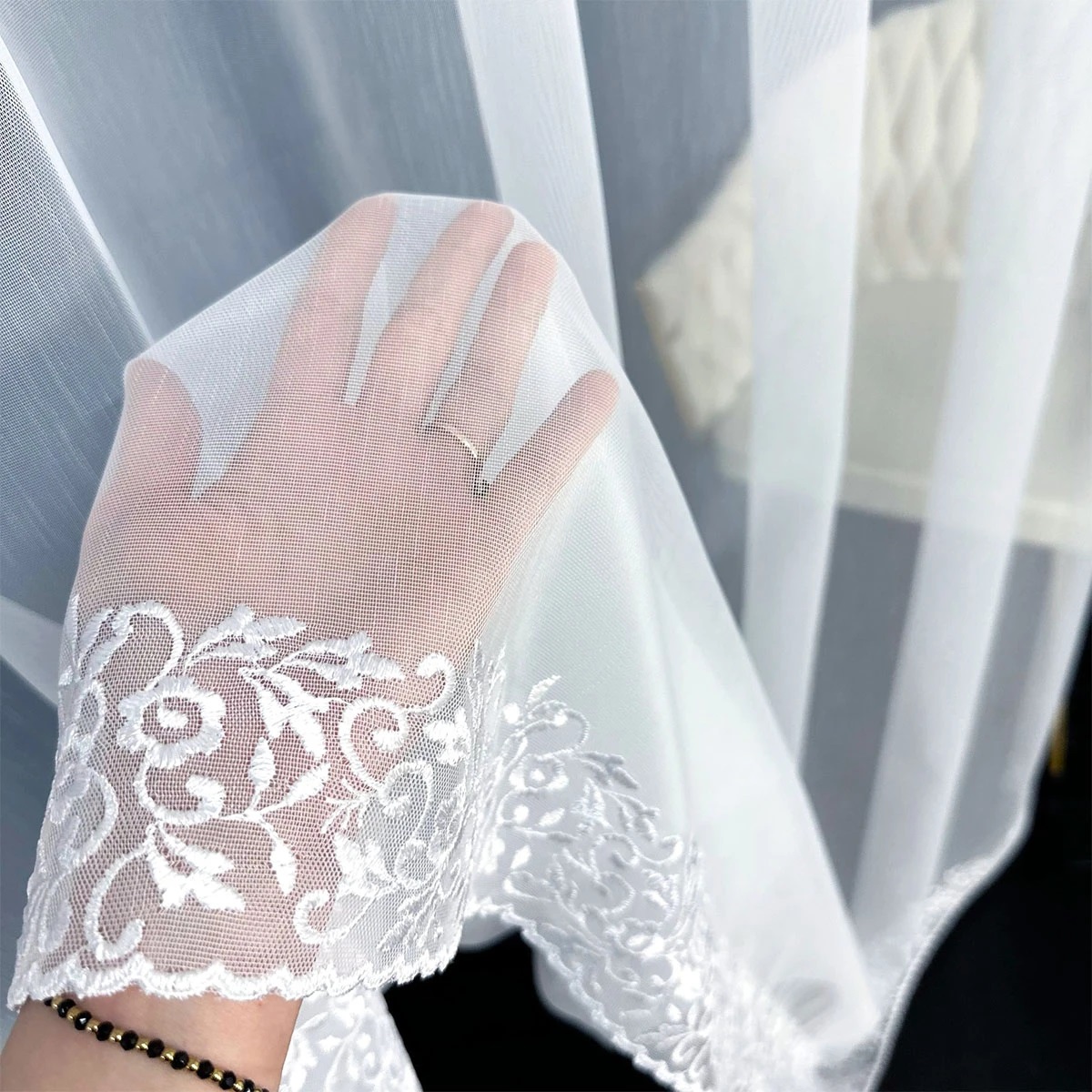 Luksuzna vezena zavjesa je jedinstveni dekorativni element koji dodaje eleganciju i prestiž svakom unutarnjem prostoru. Ovaj prekrasan prozorski ukras ističe se visokom kvalitetom izrade, finim uzorcima i pažljivo odabranim materijalima. Zavjesa izvezena bijelim koncem. Moderna ukrasna tkanina, koja je glatka i ne zahtijeva glačanje. Zavjesa je ušivena na nabranu traku 1:2, što znači da će njena površina po širini biti upola manja nakon što se zavjese nabere.Skraćivanje zavjese uz doplatu 3,99 eura.