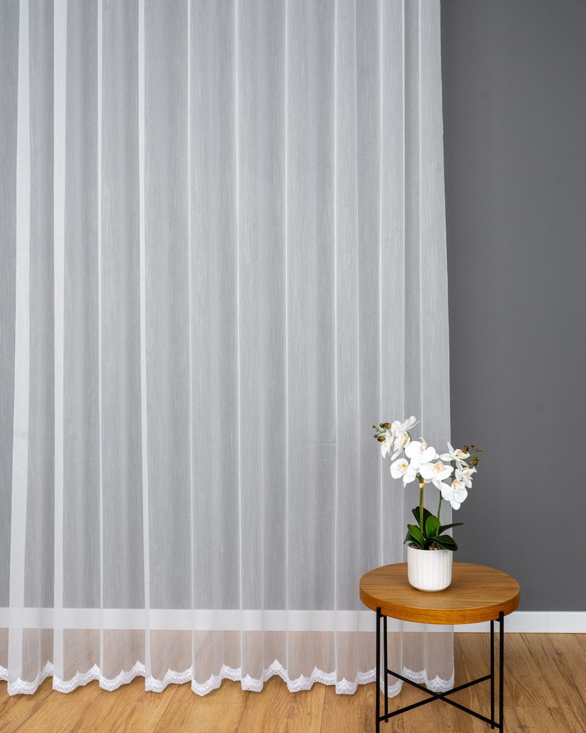 Zavjesa izvezena bijelim koncem. Moderna ukrasna tkanina, koja je glatka i ne zahtijeva glačanje. Zavjesa je ušivena na nabranu traku 1:2, što znači da će njena površina po širini biti upola manja nakon što se zavjese nabere.Skraćivanje zavjese uz doplatu 3,99 eura.