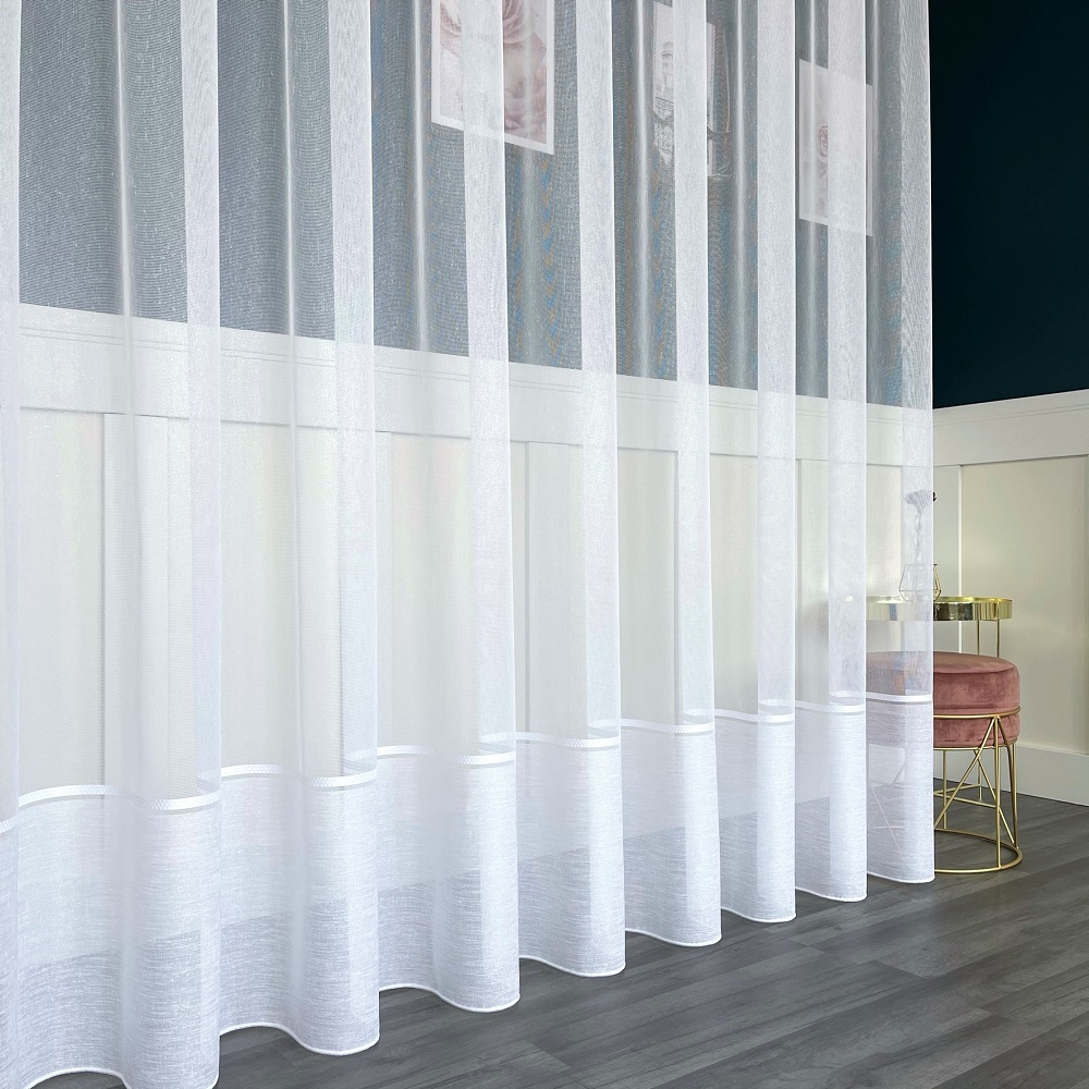 Moderna ukrasna tkanina, koja je glatka i ne zahtijeva glačanje. Maksimalna visina ove zavjese je 300 cm. Zavjesa je ušivena na nabranu traku 1:2, što znači da će njena površina po širini biti upola manja nakon što se zavjese nabere.Skraćivanje zavjese uz doplatu 3,99 eura.