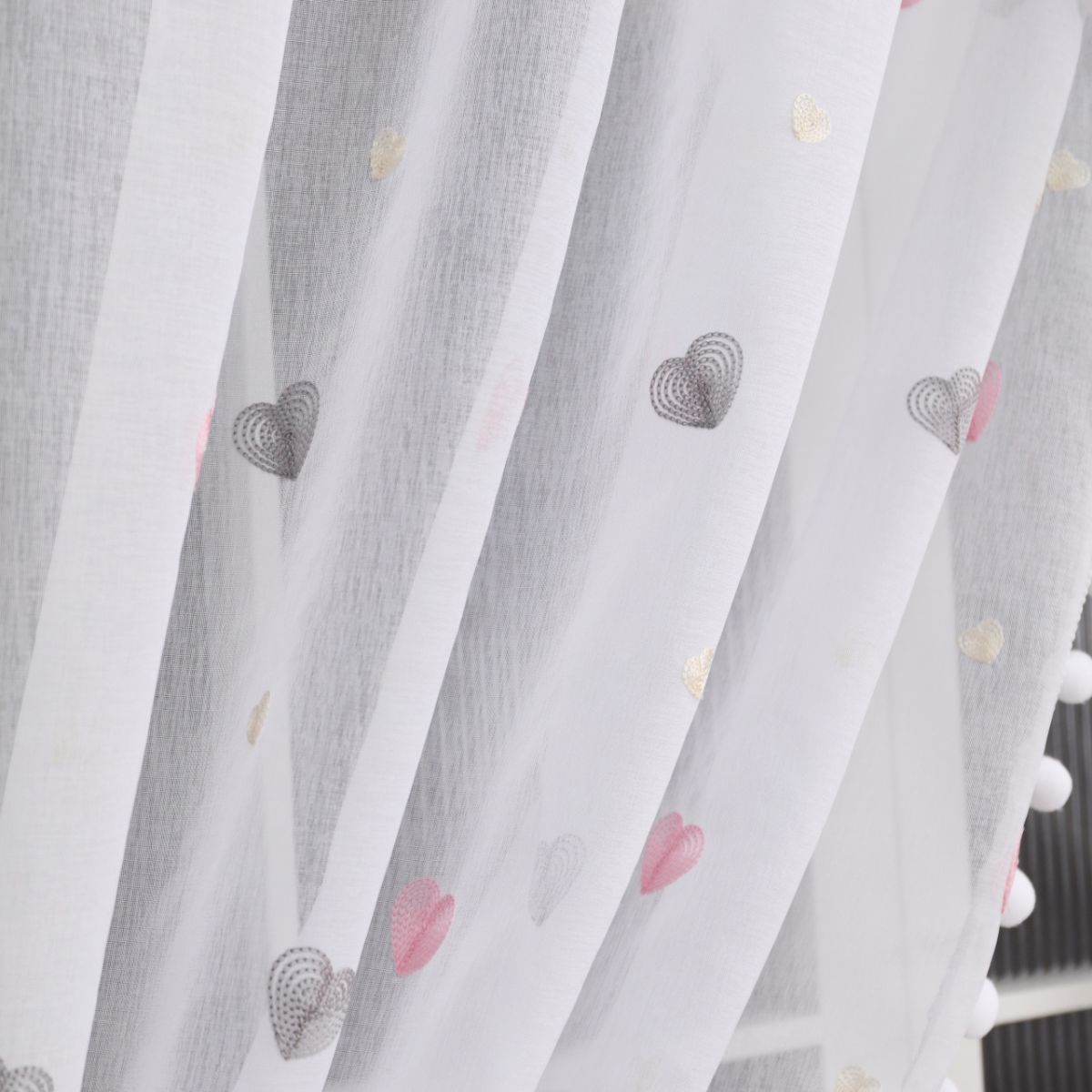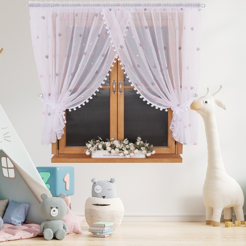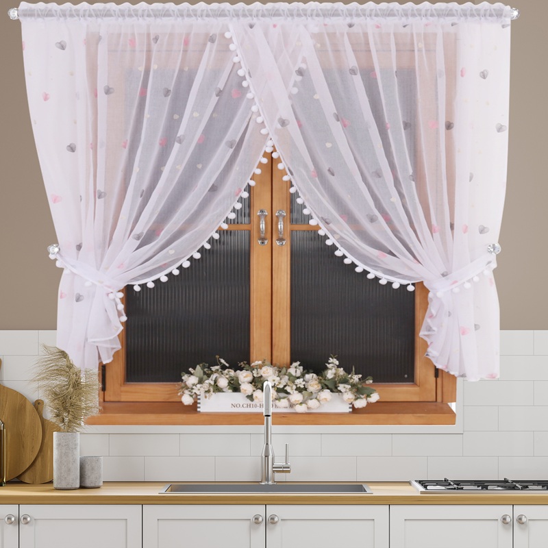 Bijela zavjesa sa srcima i pomponima – lagana dekoracija za prozor