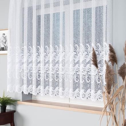 Zavjesa iz žakart tkanine na nabranoj traci gotova je za montiranje na prozoru.
